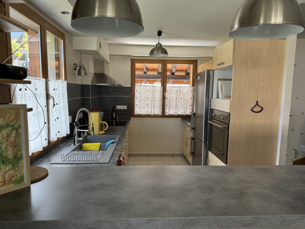 Cuisine complète équipée pour nourrir un groupe, four, plaque vitrocéramique, frigo avec congélateur, bouilloire, cafetière a filtre, machine a raclette et fondue, BBQ et lave-linge Volets et moustiquaire a toutes les fenêtres